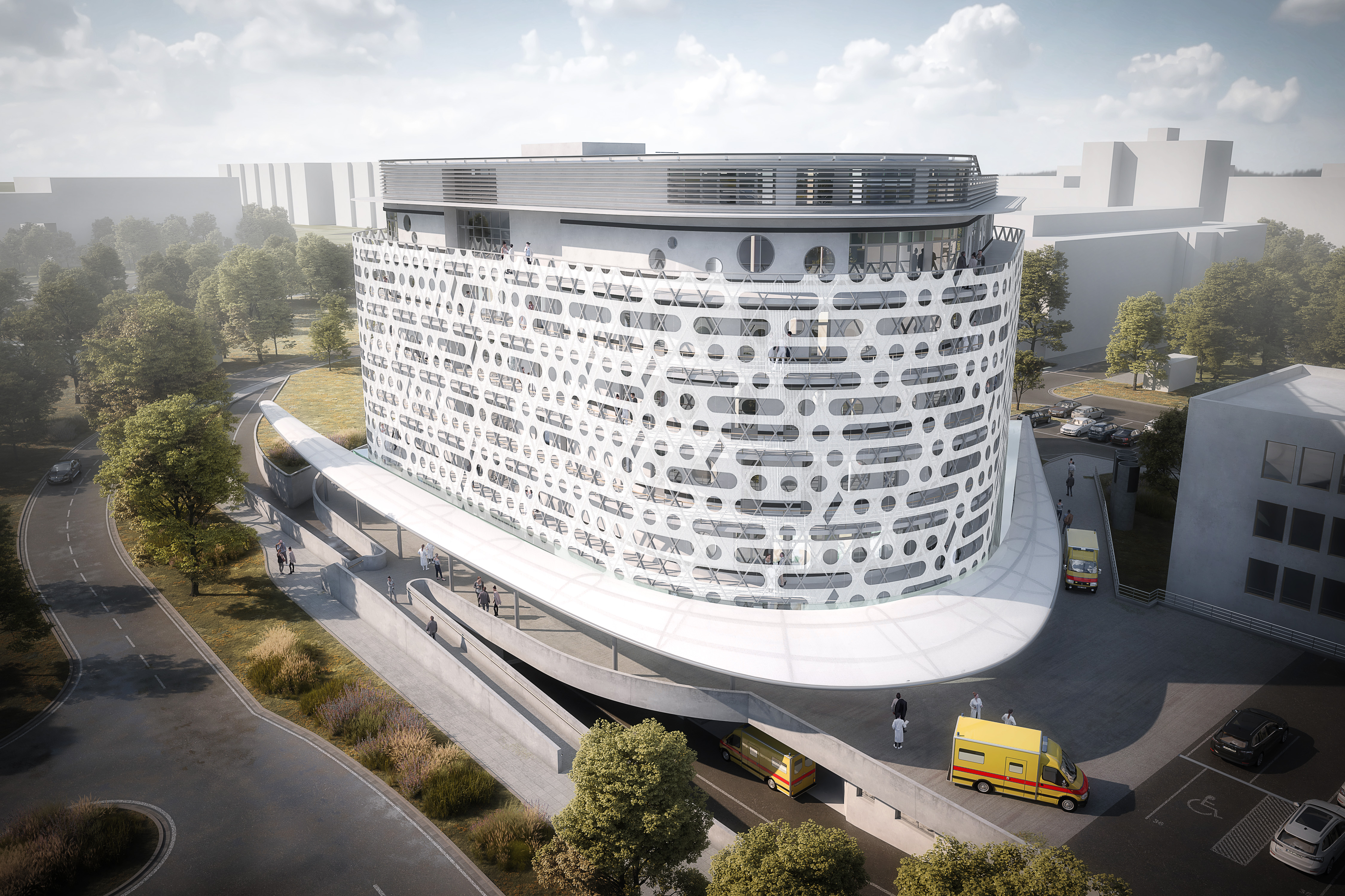 The pavilion is designed to meet strict hygiene requirements for preventing infections and ensuring the safety of patients, staff, and visitors. Outdoor walkways allow for the isolation of infected patients, reducing the risk of spreading diseases. By combining modern design with strict healthcare standards, the new pavilion optimizes operational efficiency while maintaining a high-quality healing environment.