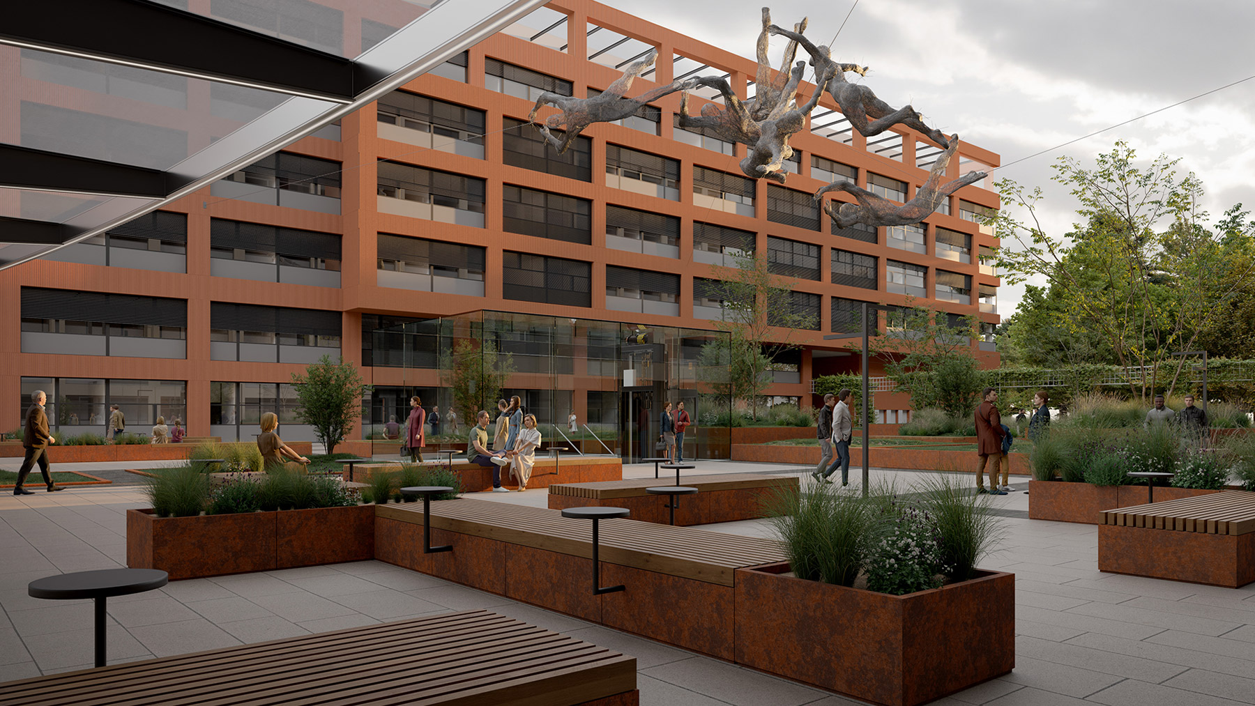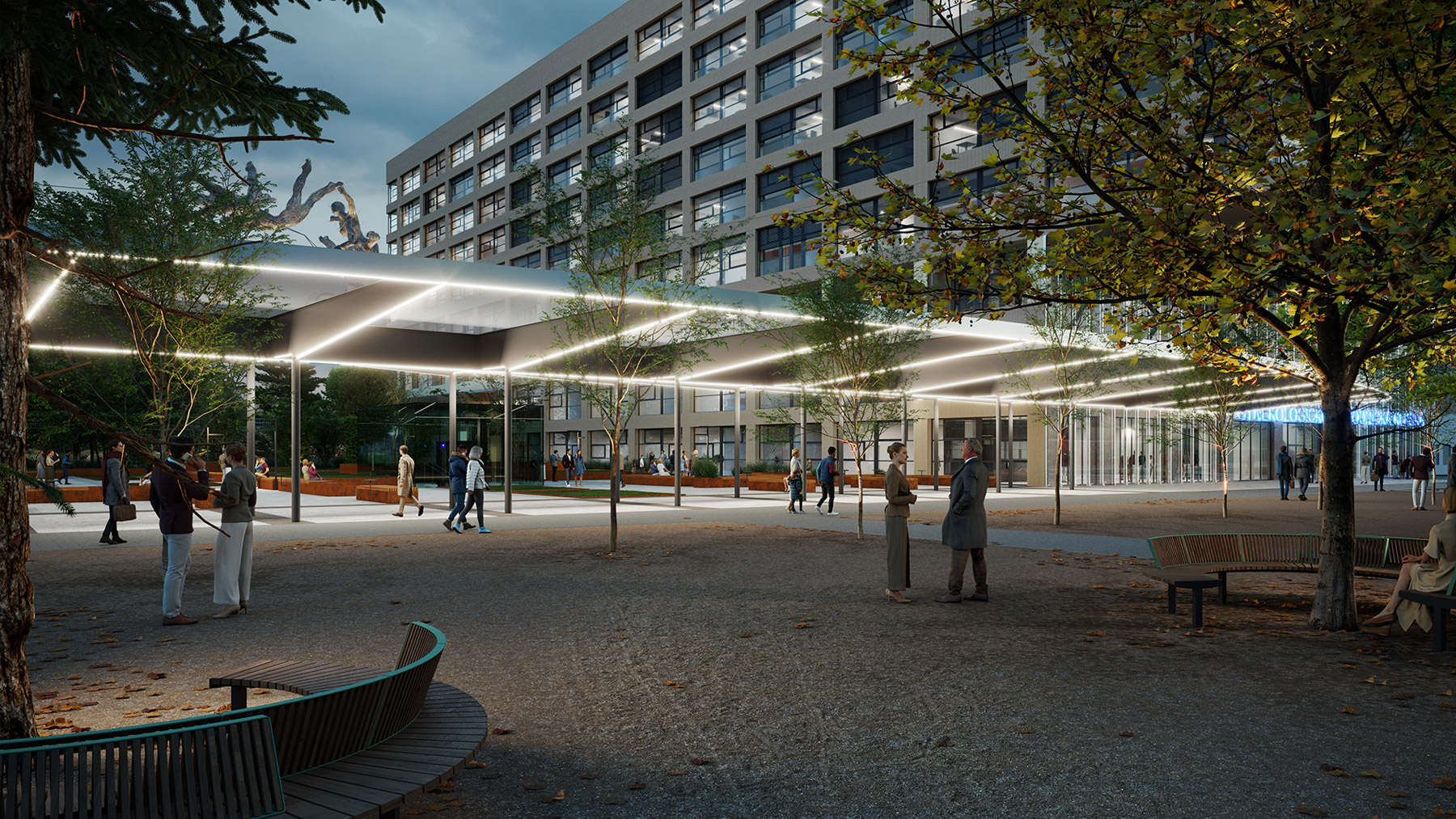 CKTCH is a six-story building with three underground levels, designed for modern medical operations. It integrates commercial, administrative, and medical spaces, with a façade combining ceramic cladding and elements supporting biodiversity. Vertical greenery enhances both aesthetics and microclimate.